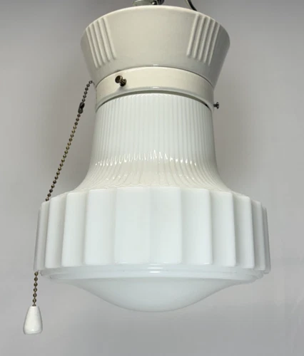 Vtg Ceiling Light Fixture Porcelain Closet Pantry Switch Art Glass Shade #L56