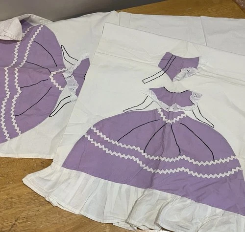Vintage Southern Belle Dancing Girl Floral Purple Cottage (2) King Shams Ruffled
