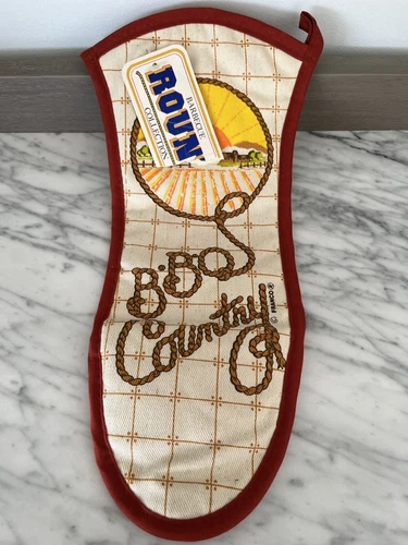 BBQ Country Long Oven Mitt Potholder Franco Red Orange Yellow Vtg 70s 80s NEW