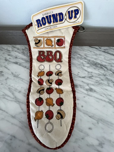BBQ Oven Mitt Potholder Franco Kabobs Skewers Mushroom Onion Tomato Vtg 70s 80s