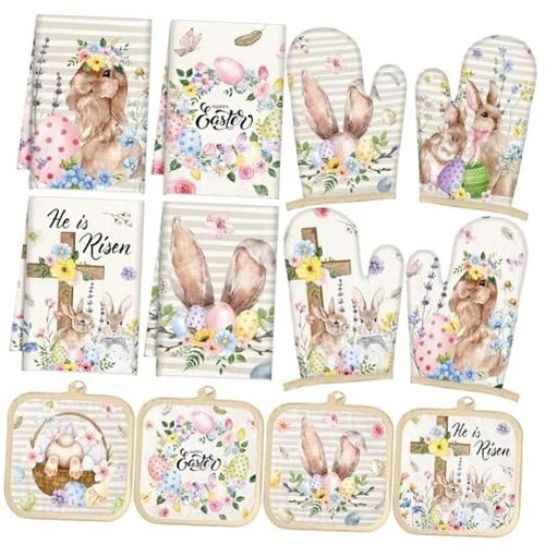 12 Pcs Easter Kitchen Accessories Set Easter Egg Oven Mitts Pot Holders Bunny