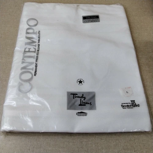 Vintage Timely Linens White Fabric Tablecloth Oblong 60x86