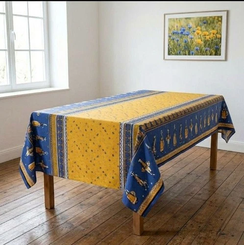 Vintage 1950s-70s Folk Art Tablecloth 59x70 Yellow Blue European Costume...