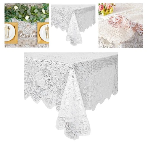 Elegant White Lace Tablecloth 60 x 97-Inch for Vintage Tea Parties & Weddings