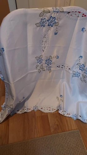 Tablecloth Bordado A Mao White Blue Floral 6 Napkins Cut Out Embroidered 48 Inch