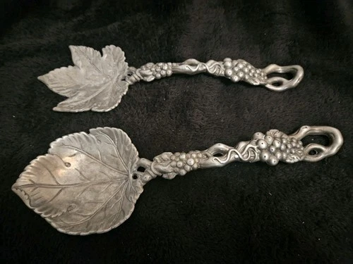 Vintage Arthur Court 1997 Grapevine Grape Leaf Salad Servers Spoon Fork Set Alum