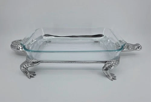 Arthur Court Alligator Collection Pyrex Stand w Pyrex 233 3Qt Baking Dish Holder