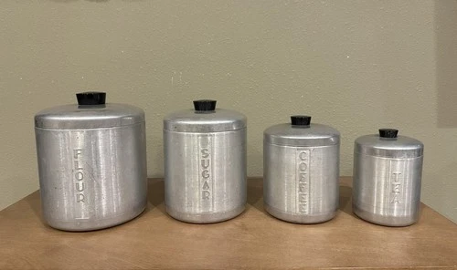 Vintage MCM Aluminum Kitchen Canister Set (4)