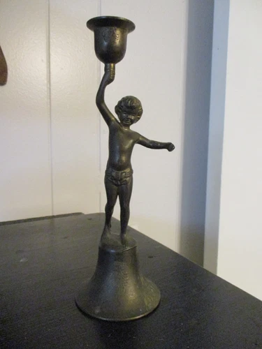 Antique Bronze Copper Art Deco Candle holder figure Child Statue 8.25'' rare