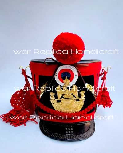 Napoleonic Leather Shako Helmet: French Military Reenactment with Red Pompom