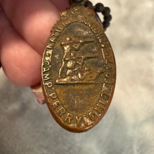 1927 Camp Perry National Matches Brass Key Fob Medal Ohio Rifle