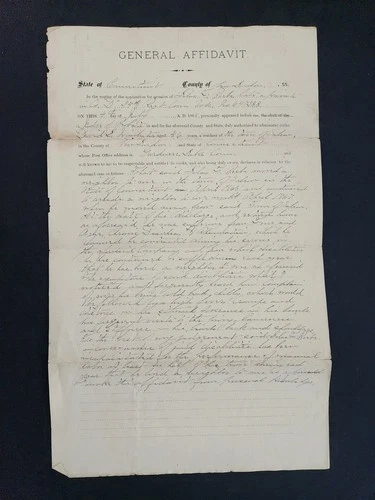 1880s antique CIVIL WAR soldier Pension new london ct PARKER, Co D 24th CT Vol