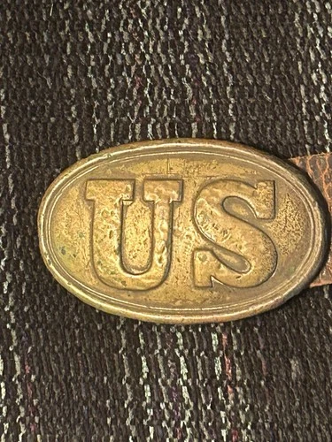 ANTIQUE ORIGINAL CIVIL WAR US BELT BUCKLE "ARROW HOOKS" BELT PORTION