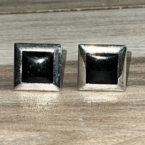 Vintage Swank Cufflinks with Black Onyx Style Inlay Men’s Silver Tone Classic