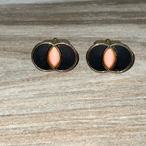 Vintage Anson Cufflinks Art Deco Revival Men’s Gold Tone Black And Coral Classic