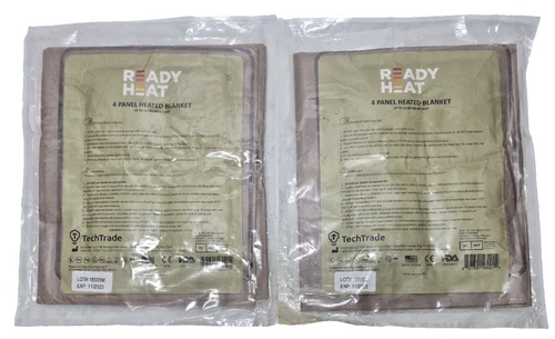Lot of 2 - 4 READY-HEAT 4-PANEL HEATED EMERGENCY/SURVIVAL BLANKET Expired