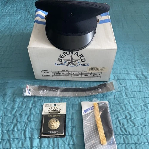 BERNARD CAP CO USA Black FINE MILITARY UNIFORM HAT Officer Dress W/extra!!!!!!!