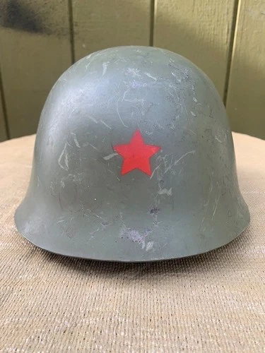 Vintage Yugoslavian/Serbia YPA M59/85 OD Steel Helmet w/ Red Star Cold War Era