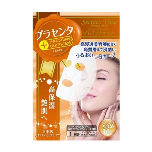 Placenta Premium Sheet Mask with VC/APPS, Individually Wrapped, 5 Pack