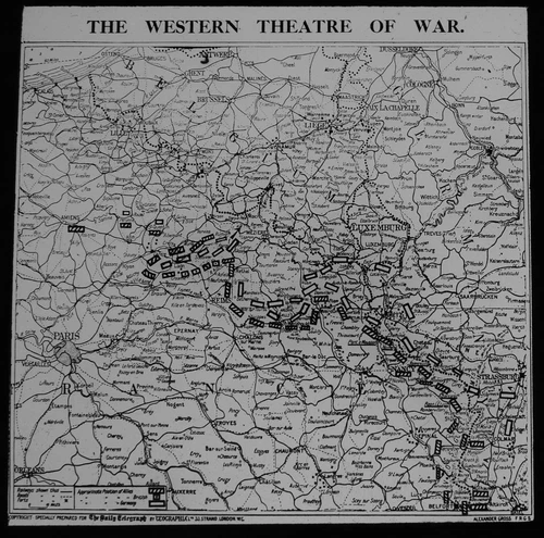 WW1 MAP OF THE WESTERN WAR AREA Magic Lantern Slide WORLD WAR ONE