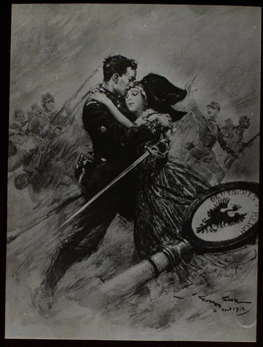 Magic Lantern Slide LOVE SCENE TITLED AT LAST WORLD WAR WAR 1914 WW1 BATTLE