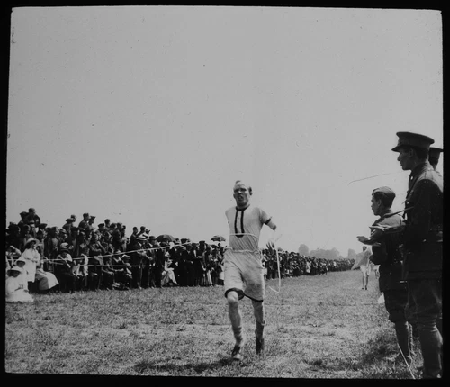 RAF / ARMY SPORTS DAY NO3 ONE MILE FINISH CIRCA WW1 Magic Lantern Slide PHOTO