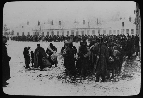 Photo WW1 RUSSIAN TROOPS FEEDING AUSTRIAN PRISONERS Magic Lantern Slide ANTIQUE