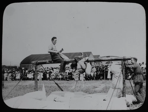 RAF / ARMY SPORTS DAY NO6 PILLOW FIGHT FINAL CIRCA WW1 Magic Lantern Slide PHOTO