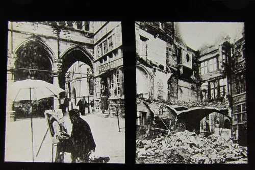 Glass Magic lantern slide YPRES LE NIEUWERK BEFORE & AFTER BOMBARDMENT WW1