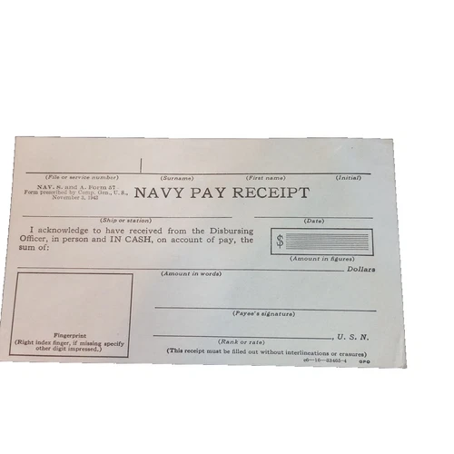 Vintage WWII US Navy Pay Receipt November 3, 1943 Never Used, ephemera
