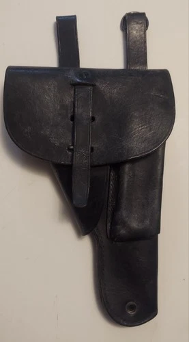 French Leather Pistol MAC Mle-1950 Style Holster Black Militaria Field Gear