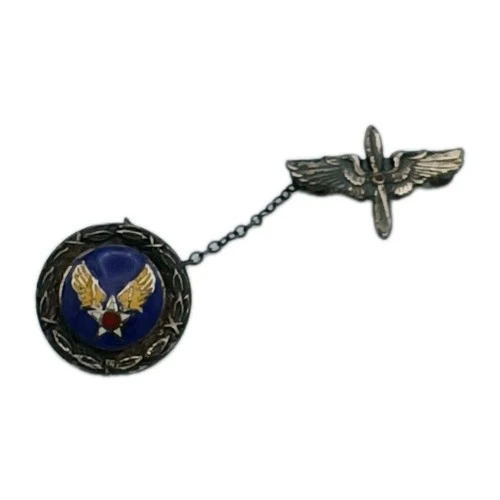 WWII US ARMY AIR FORCE Sterling Silver Wings Prop Sweetheart Chain Pin Vintage