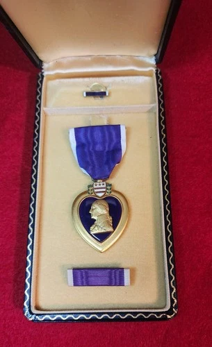 Original WW2 WWII Purple Heart Medal Lapel Pin Badge Ribbon - named Case