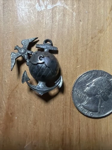 USMC ANTIQUE WW2 Hat Badge ,screw Back,STERLING RARE