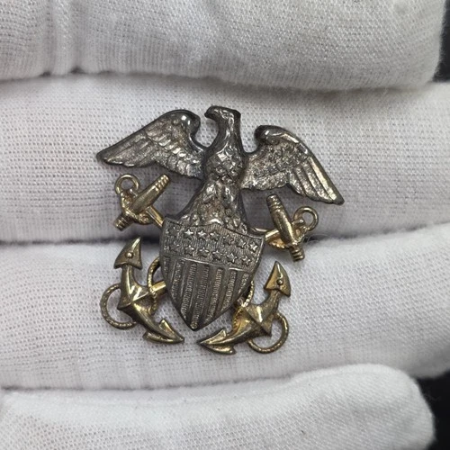 Vintage WW2 US Navy 1/20th Gold Filled on Sterling Officer’s Insignia Cap Pin