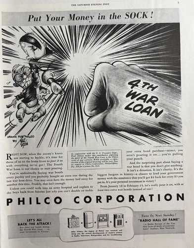Philco Corporation War Loan WWII Sock Back Attack Adolf Enemy VTG Print Ad 1942