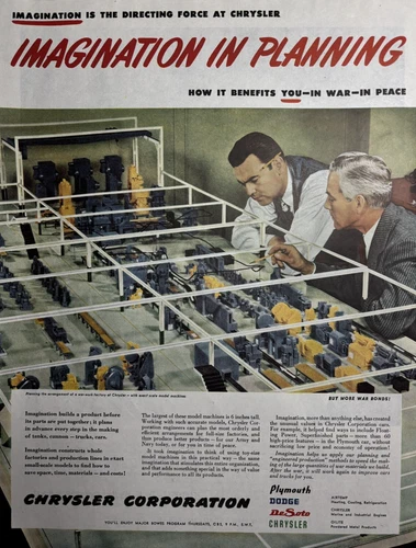 1945 Chrysler Corporation Imagination Planning WWII War Work VTG Print Ad
