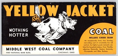 Yellow Jacket Coal Middle West Coal Co Cincinnati OH Ink Blotter 3.5x7.5"