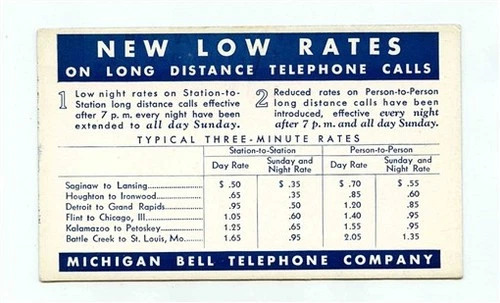 Michigan Bell Telephone Co New Low Rates Blotter