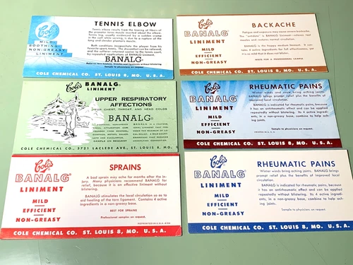 Lot of 6 - Cole's Banalg Liniment Advertising Ink Blotters St. Louis MO - Unused