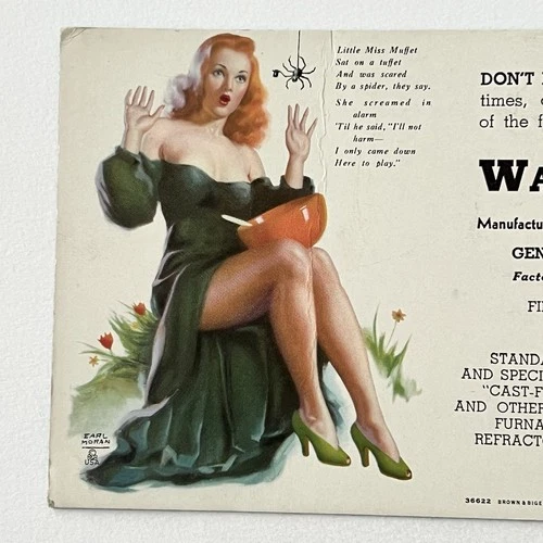 Earl Moran Pinup Ad Ink Blotter Halloween Woman Spider 1947 Walsh Refractories