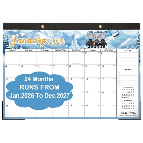 24 Month Desk Calendar Jan 2026 To Dec 2027 Large 17x12 Inch Academic Pro