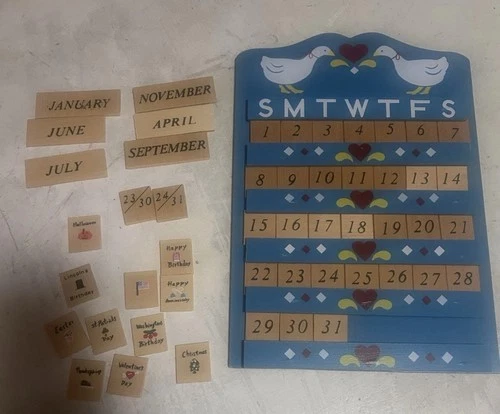 Goose Wood Perpetual Calender Country Style Granny Core Vintage