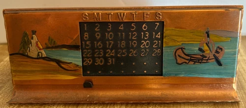 VTG Perpetual Desk Calendar "Glacier National Park" Native American Theme, Works