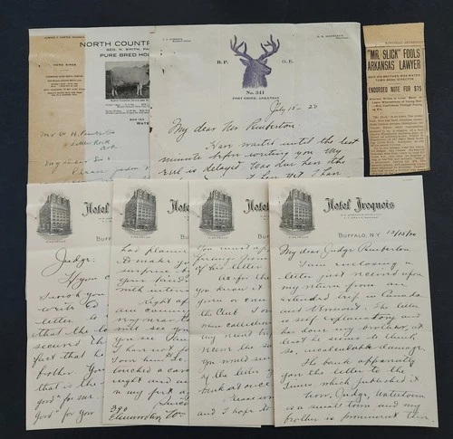 1920 antique JUDGE WALTER PEMBERTON little rock ar LETTER LOT watertown ny SCAM