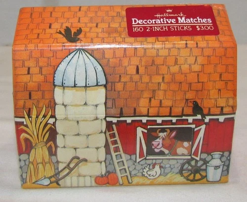 1982 Hallmark Decorative Matches Matchbox in Barn Shaped Box, SEALED