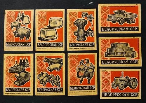 Travelstamps: 1961 BSSR Matchbox Labels- Industry, Agriculture, Culture Set of 9