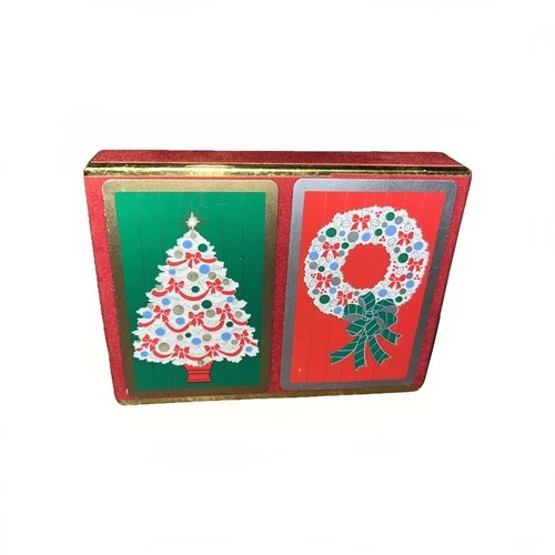 Vtg Congress Christmas Themed Playing Cards Crusher Velvet Box Tree Wreath NIP*