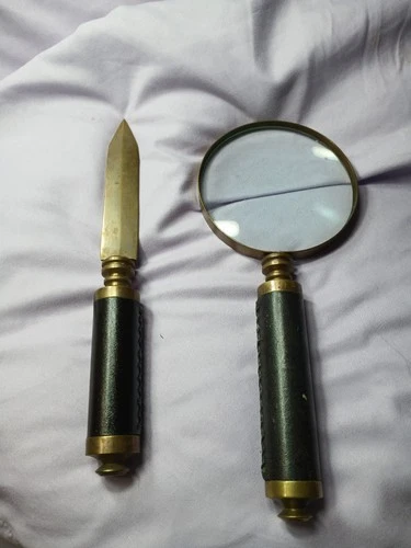Set Of Vintage Leather Handled Magnifying Glass and Letter Opener