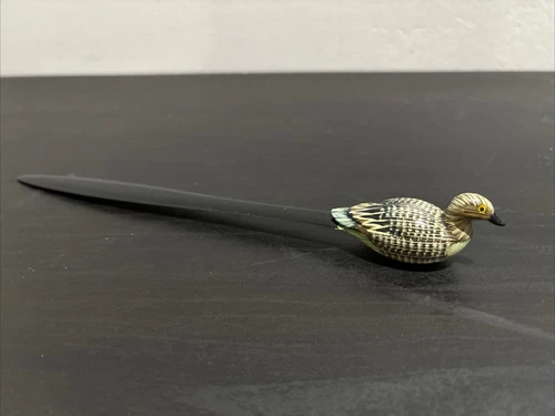 Vintage Duck Letter Opener, Lacquered on Carved Wood Envelope